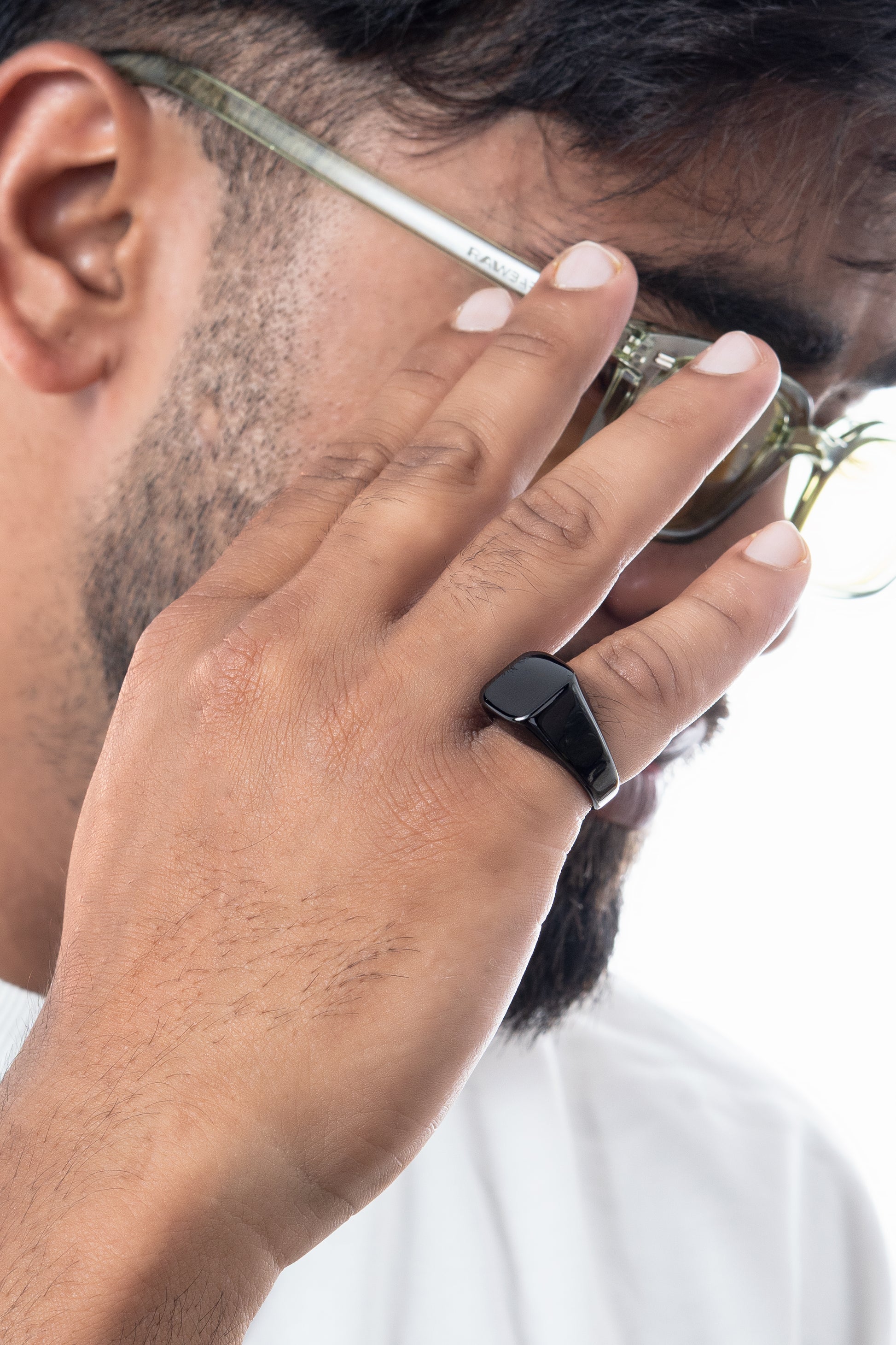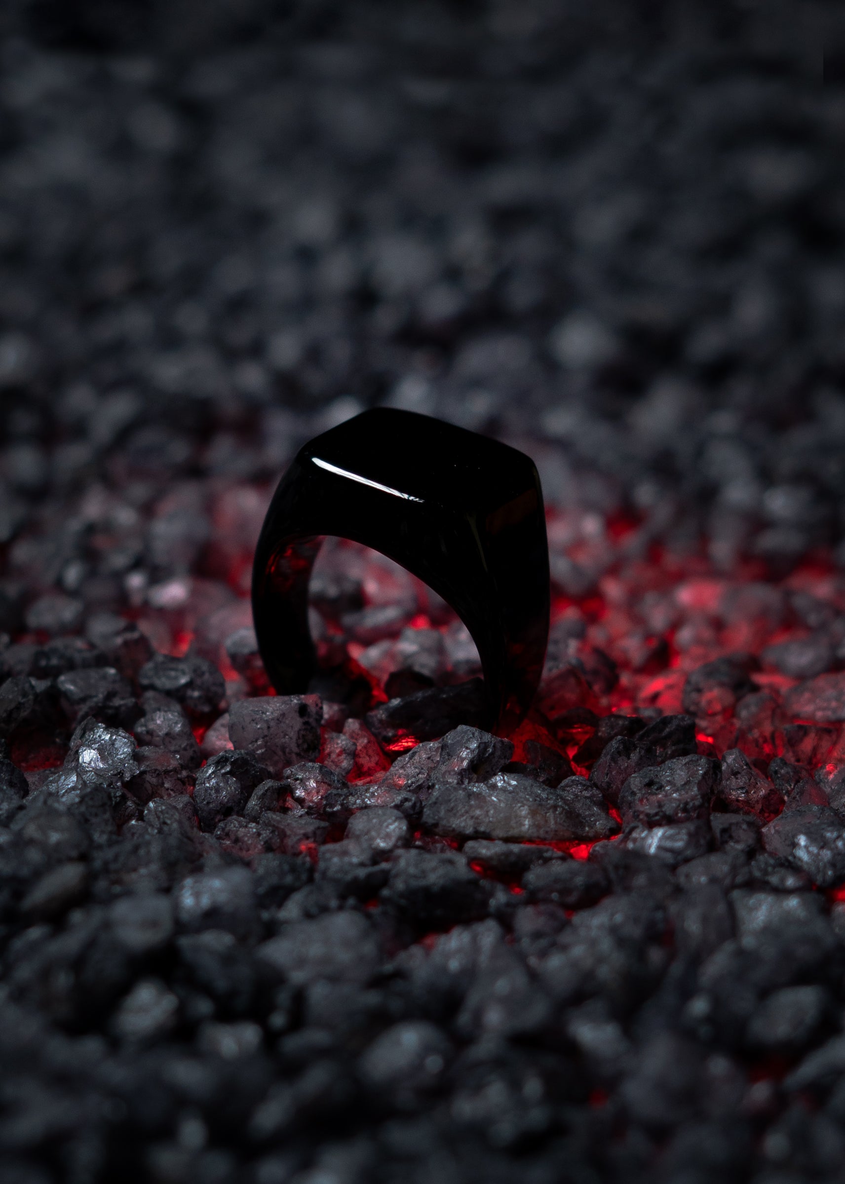 Introducing OBSID - the perfect ring for the modern man. Crafted with a sleek black design inspired by obsidian, this ring exudes mystery and power. Elevate your style and make a statement with OBSID.